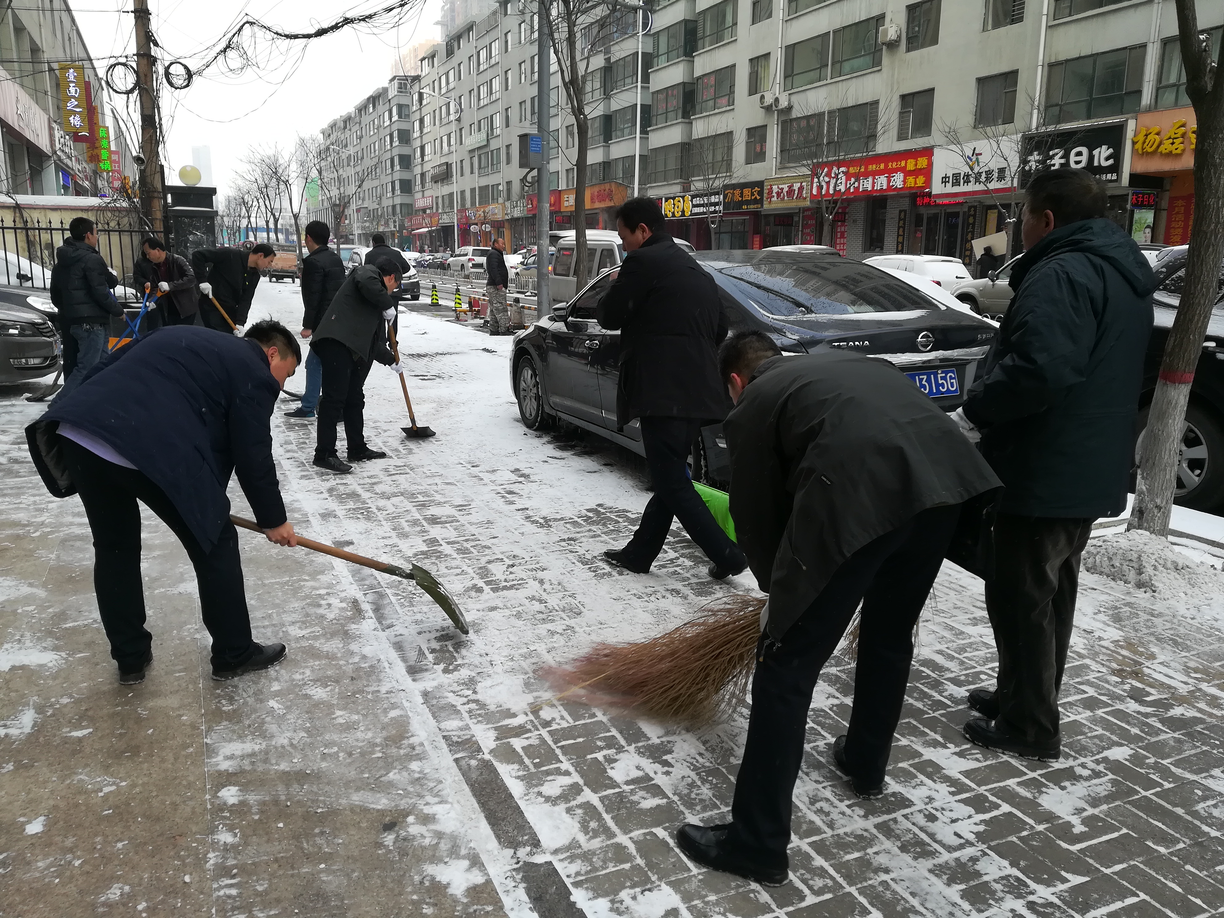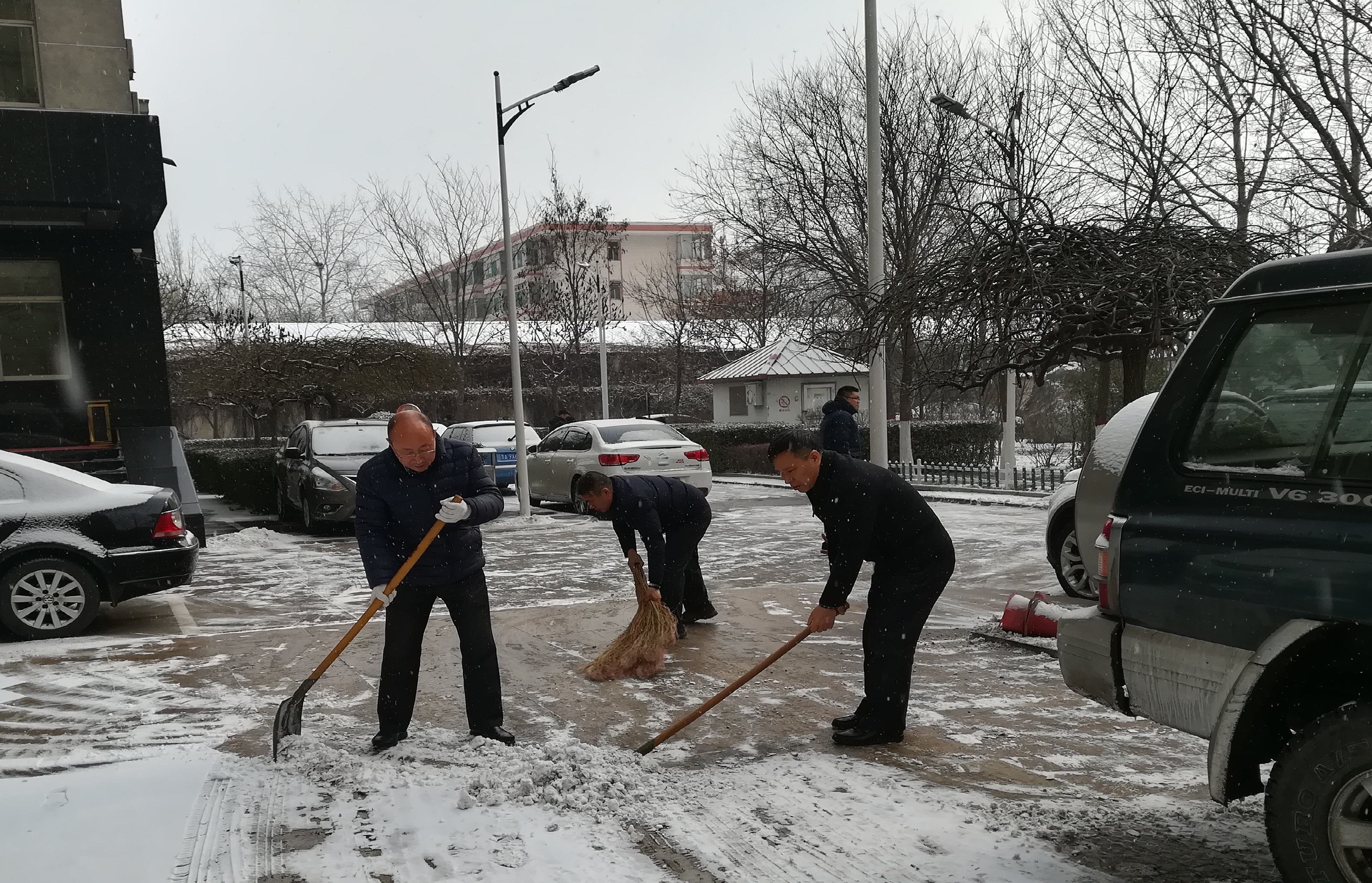 今天中午,机关服务中心组织干部职工对办公楼前及院内的积雪进行清扫,局领导们带头参加此次扫雪活动。大家不畏严寒,齐心协作,用铁锹、扫帚等工具将积雪清理到花池、下水道,使冰雪可以集中融化,保持院内干净整洁。保证了机关院内的交通有序、顺畅,有效的保障职工的出行安全。