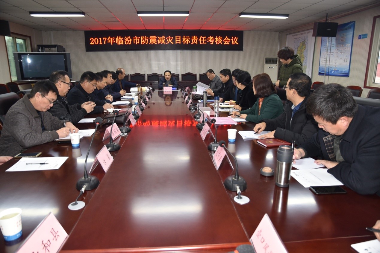 2017年12月13日上午8时,根据《山西省2017年防震减灾目标责任状》、《临汾市防震减灾指挥部领导组会议纪要》(〔2017〕1次)、《关于将防震减灾工作列为全市年度目标责任考核综合加减分事项的通知》(临考办发〔2017〕13号)和《临汾市2017年防震减灾目标责任状》的要求,在市地震局三楼会议室召开了十七个县市区的“2017年防震减灾目标责任考核会议”,大会由赵靖平局长主持,十七个县市区地震局局长、地震办主任、壶口管委会负责人和市地震局科以上领导参加。