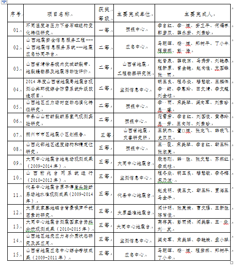 2016年度365备用网址安全化防震减灾科技成果获奖项目