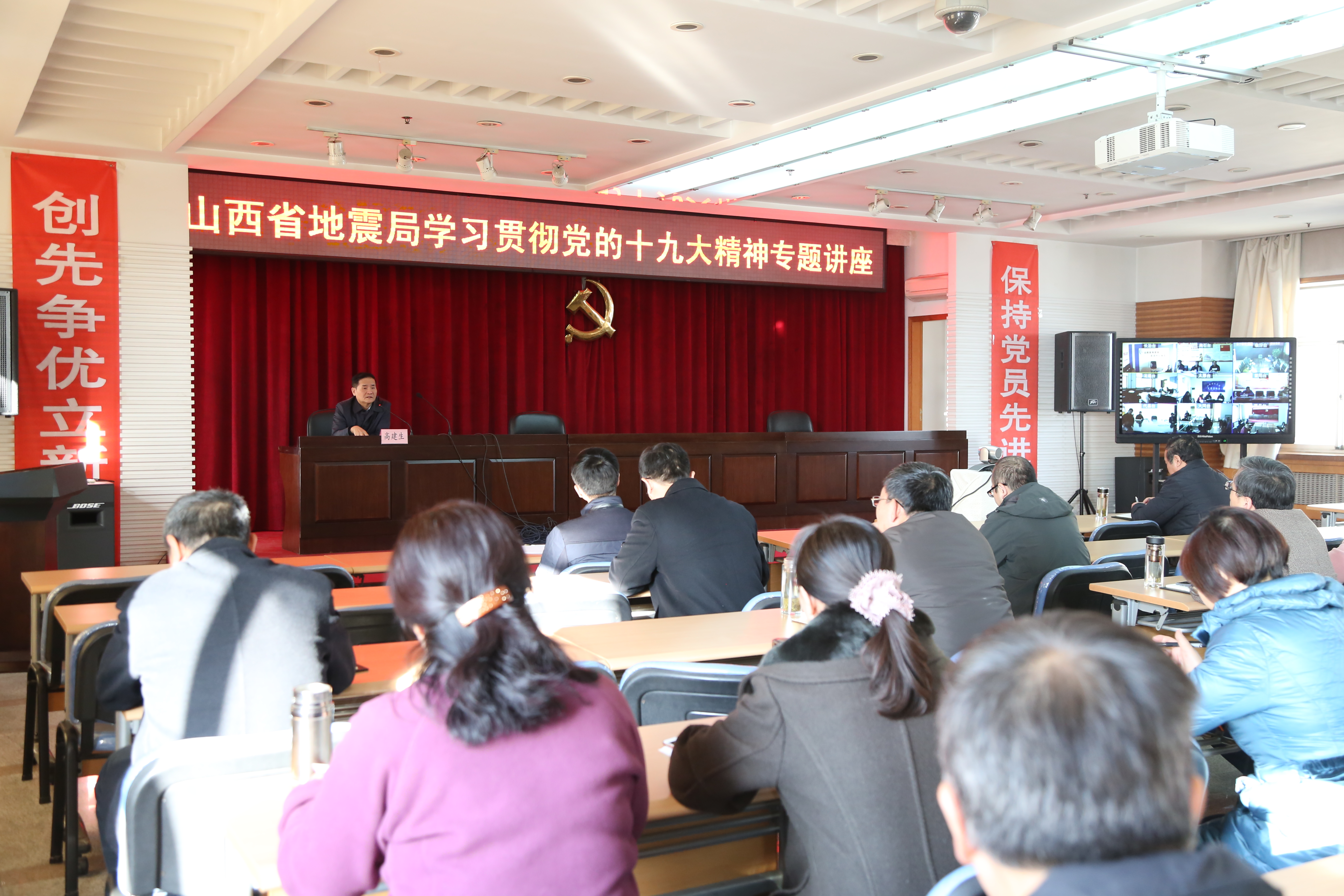 2017121日上午,365备用网址安全化特邀山西省委党校原副校长、巡视员高建生教授,举办了全局干部职工“学习贯彻党的十九大精神”专题讲座。各地震台职工通过视频同步参加学习。